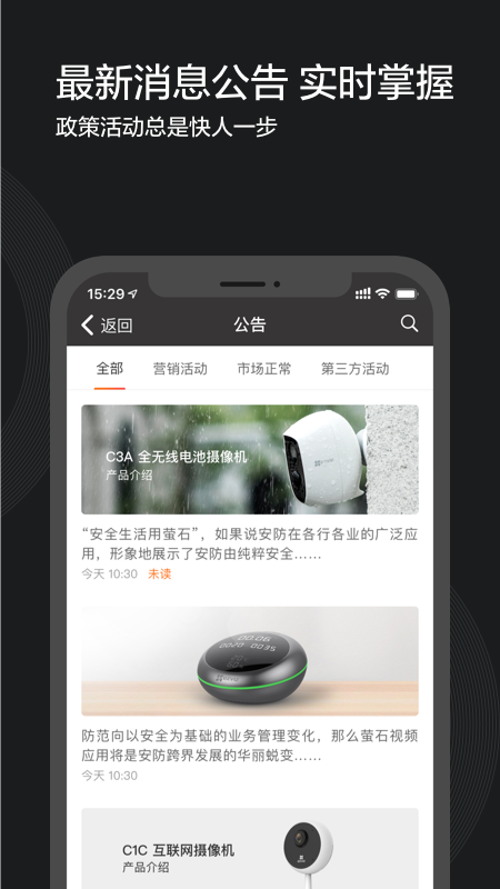消息模块可以使的我们更加快捷准确的了解萤石产品信息,市场政策等。