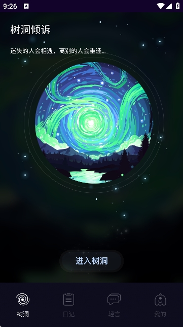 3、进入到软件首页,如图所示;点击进入树洞,开始聊天