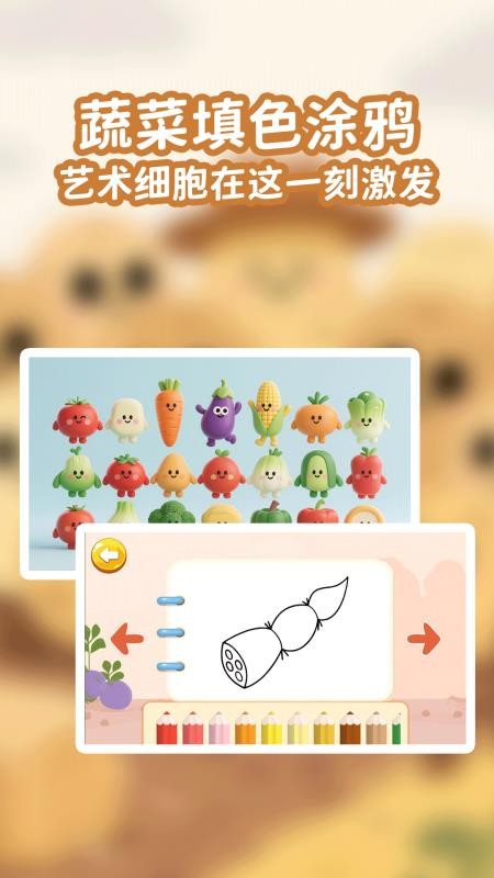 强大的蔬菜填色涂鸦功能,可尽情发货自己的想象力,自由在应用填涂蔬菜颜色;