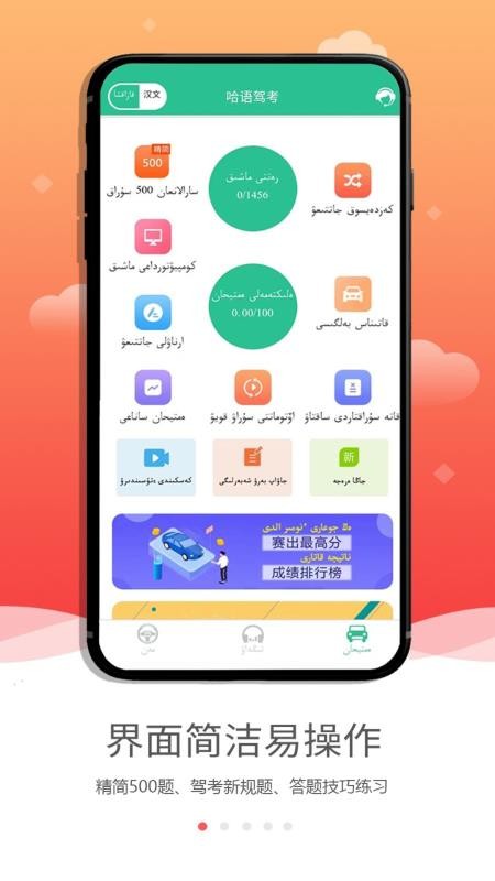 哈语驾考(原名:哈语考车证)是专为哈萨克语人群所准备的学车app,该软件支持人工读题,并且翻译准确,同时有小车客车货车等车型驾驶证考试题目,满足你的不同需求,并且还有双语切换,十分方便。