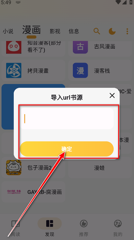 4.复制粘贴书源地址,然后点击确定。