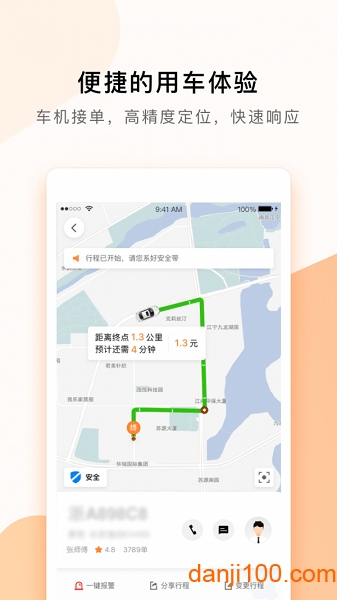 支持一键快速报警的功能,让独自出行的用户可以体验到有安全保障的出行体验。