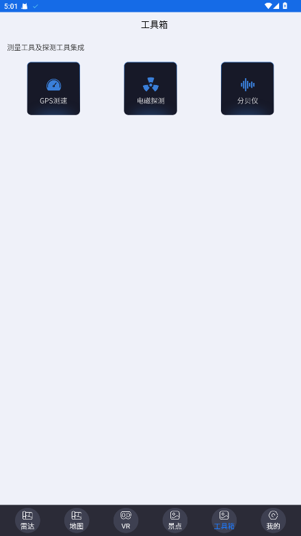 用户在方位页面可以查看自己当前的方向位置以及经纬度,点击右上角瞄准图标可以进行水平校准。