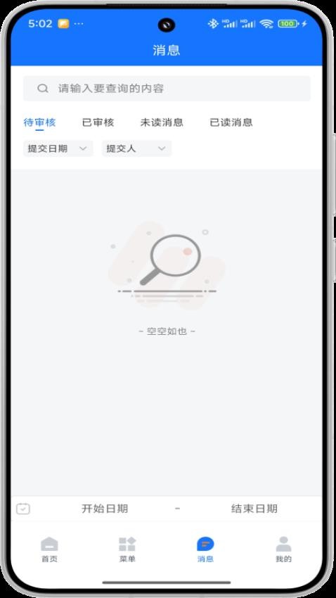 可通过选择开始日期、结束日期的方式查看消息;