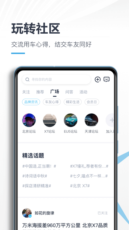 车友社区丨官方带您全面了解北京汽车,支持车友论坛、在线问答、活动专区功能,让购车以后的生活更加丰富多彩。