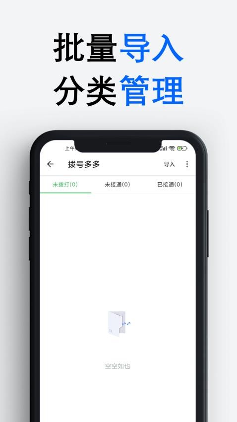 拨号多多免费版是针对电销人员打造的拨号助手,软件采用了智能的拨号模式,只要批量的导入电话号码以后,就可以帮助电销人员实现自动拨号操作,以后拨打客户的电话就会变得非常的轻松,可以帮助电销人员解放双手,让拨号可以变得非常的快速、高效、便利。拨号多多app官方版会自动记录用户的拨号数据,让用户可以通过软件掌握每天的拨号情况,以后整理数据的时候就会非常的轻松,这样才能让你更好的进行各种拨号工作,而且还可以对拨号的客户进行标注,以便你可以更好的管理有意向的客户,帮助电销人员提升交易成功率,需要的用户快来下载吧!