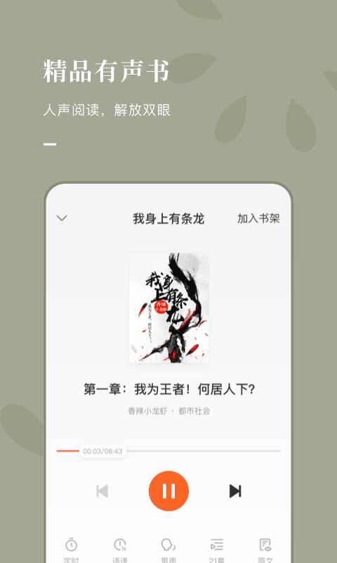 这里每一本书都能听,让你阅读的时候,眼睛也能随时休息一下。