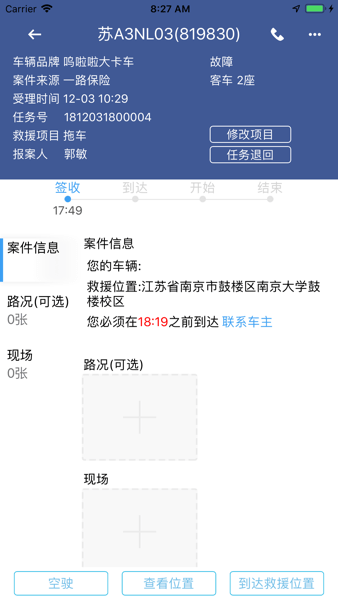 救援技师可以方便地查看救援任务的详情,包括案件类型、位置等信息,并与客户进行联系。