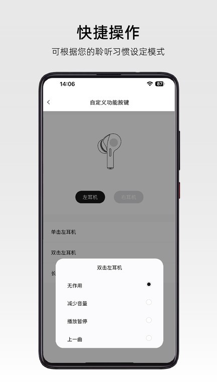 【快速降噪】还可以对耳机开启降噪模式,这样就能帮助用户快速降低耳机的噪音,让你获得更好的体验。