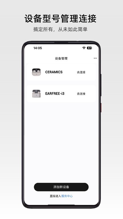 弱水时砂品牌旗下CERAMICS,EARFREE耳机的适配,售后软件,具有控制耳机音量,自定义按键,降噪,音乐风格切换,电量显示等使用功能。弱水时砂旗下所有耳机的售后也在弱水时砂app上进行哦。