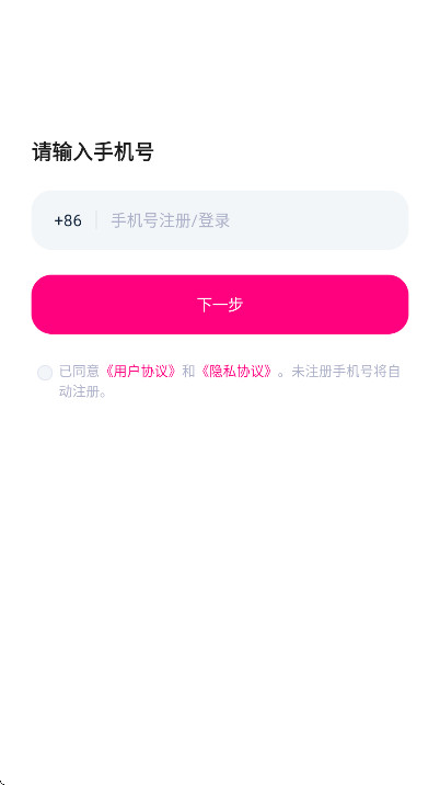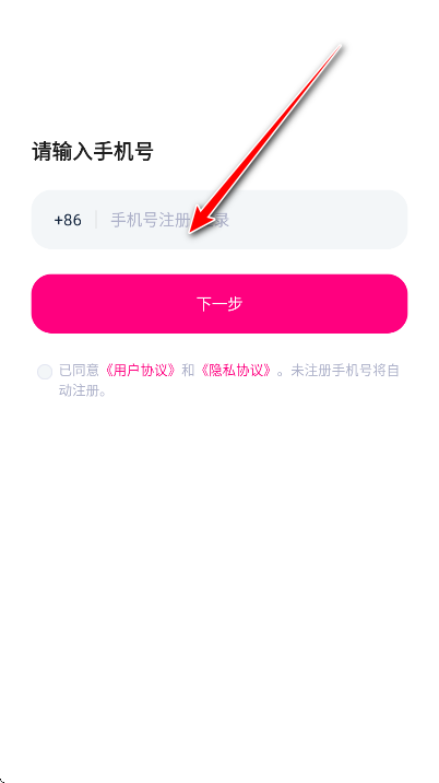 2.勾选已同意《用户协议》和《隐私协议》。未注册手机号将自动注册。,点击下一步,即可注册登录成功。