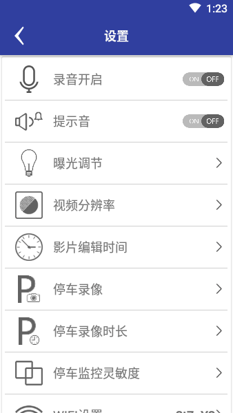 能够远程控制WIFI行车记录仪进行一系列的操作,比如WIFI连接行车记录仪,可以远程设置行车记录仪相关信息,可以抓拍,保存图片到本地,下载视频,本地回放视频,远程回放视频,分享照片及视频。操作简单,界面美观。