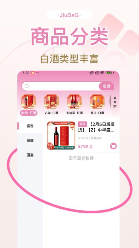 还可以直接搜索需要的白酒商品,就可以快速的进行查找。