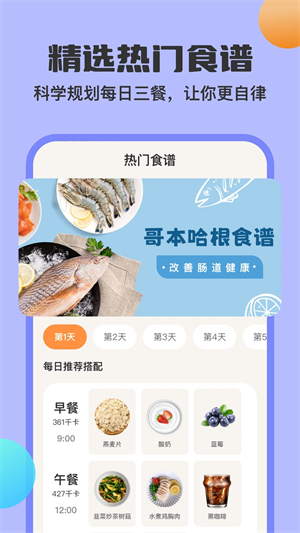 科学食谱专属定制:专业的食谱推荐,让您的每一餐不再烦恼,参考减肥食谱和卡路里,叠加薄荷健康记录,让您的燃脂减肥效果好于哥本哈根与生酮减肥。