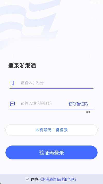 2.点击验证码登录,勾选同意《浙港通隐私政策条款》即可登录成功。这里需要注意的是未注册的手机号首次登录即默认注册啦。