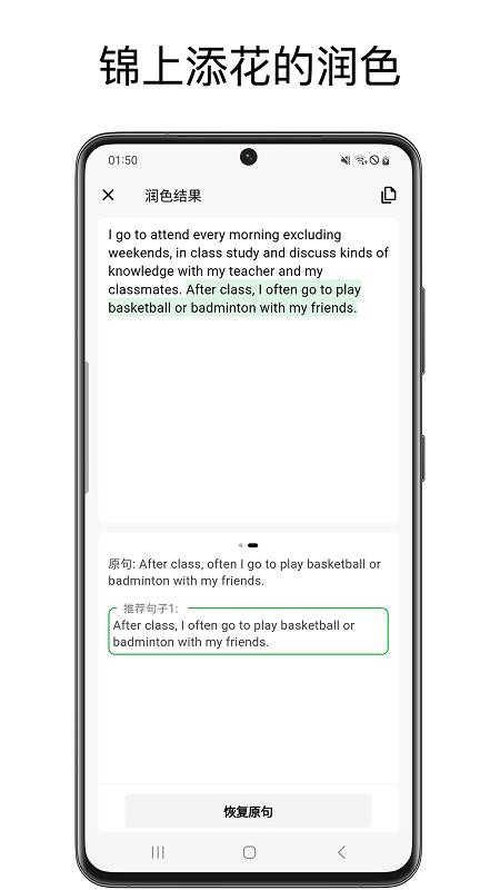 批改时会根据作文内容推荐同义词、近义词,还能延伸讲解词组搭配。