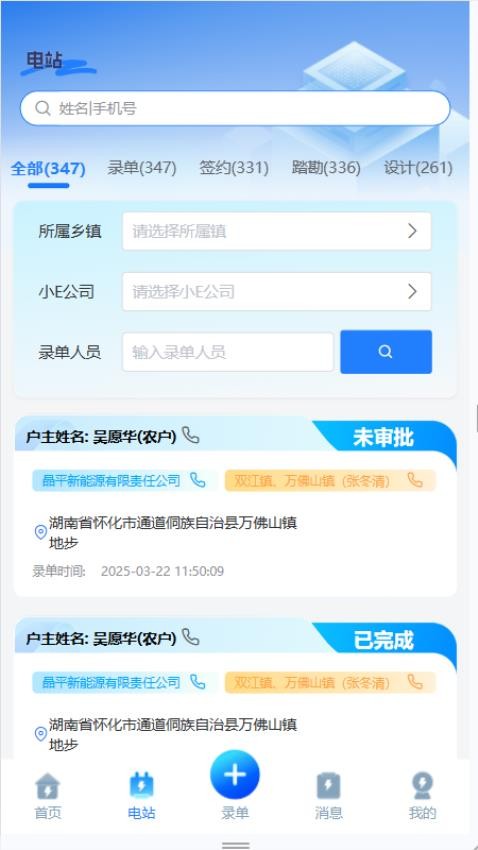 4、在电站板块就能搜索查询客户,了解各个客户信息,了解审批状态;