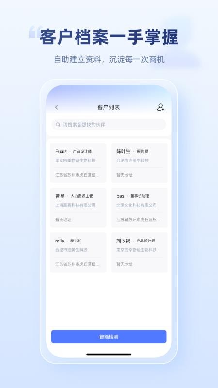 软件支持用户智能扫码客户的名片,实时搭建自己的人脉网络,轻松进行扫码搭建。