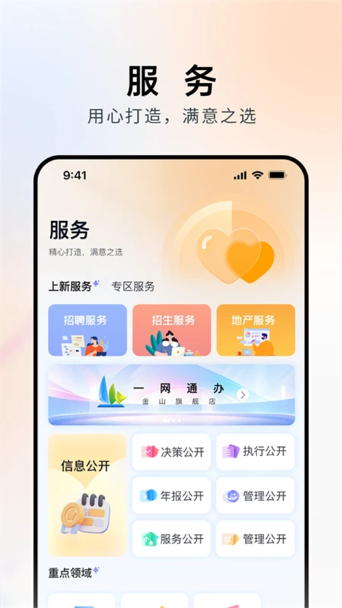 支持政务服务,可以进行政务服务,公开政务信息,线上办理事物;