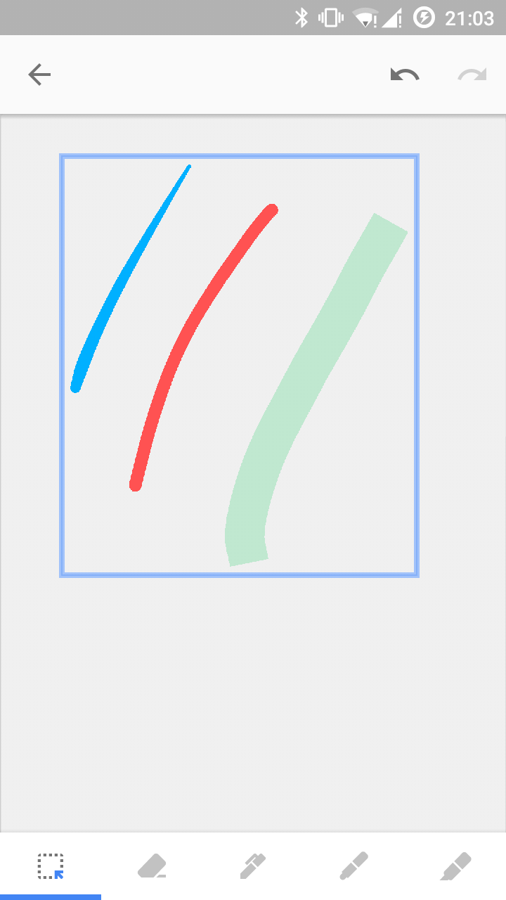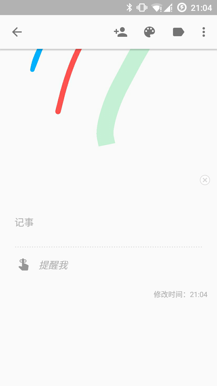 绘图好像是最近某次更新加入的新功能,如果脑中突然闪现文字不足以表达的灵感,那就可以在 Keep 中把它画出来。Keep 的绘图中包含了三种画笔,每种画笔都能调节笔刷颜色和大小;橡皮擦的设定比较另类,不是抹擦,而是点擦,不管画的多复杂,只要是一笔画出的东西,点其上的任一点就会把这整个图形擦除;框选功能可以对画布上被框选的图形进行移动,不需要框的多精确,主体大部分在内即可。