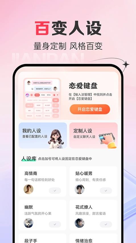 AI恋爱键盘app支持用户可以在线使用智能键盘来高情商的聊天,用户可以在线聊天互动,轻松进行交流,随时进行流畅的聊天,海量的话术也可以适用于用户的多种场景,并且用户也可以定制百变人设,轻松实现风格的打造,体验不同人设的聊天。