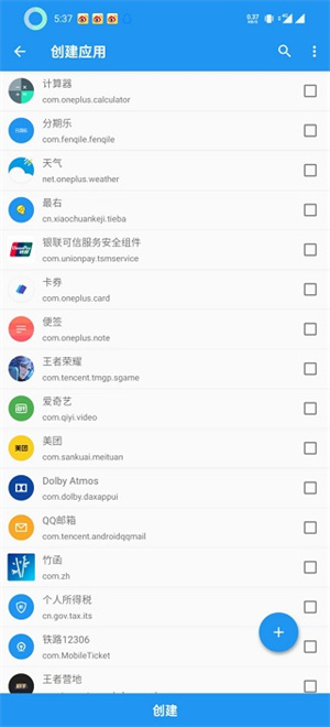 点击创建应用,勾选需要创建的应用,点击创建。