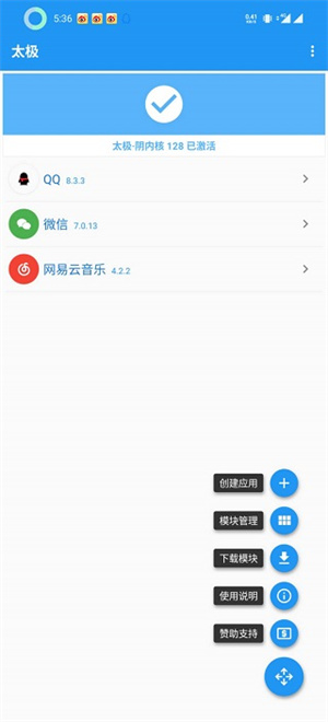 打开太极可以看到 太极内核已激活,说明可以正常使用。