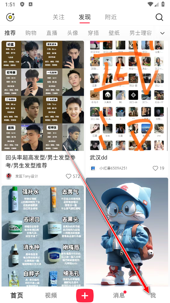 打开小红书App,点击底部的我