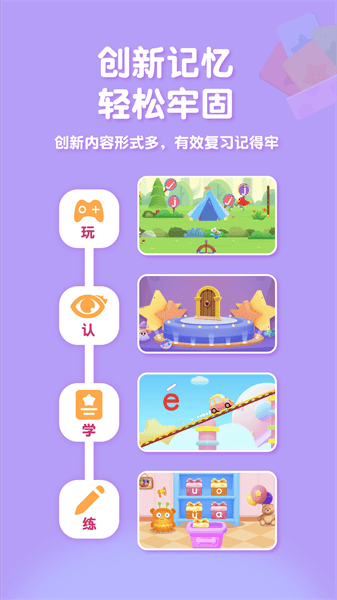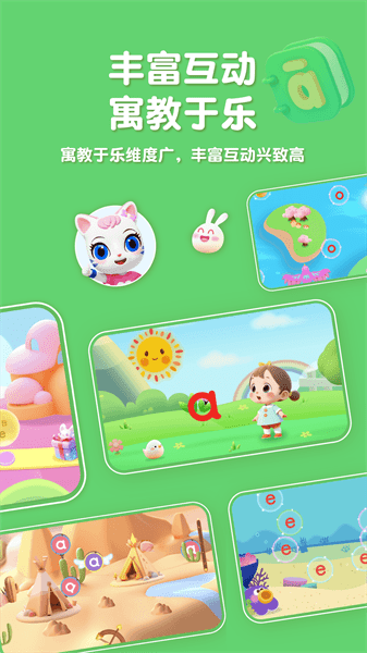 有趣的关卡设计,精美的画面效果,高频的互动操作有效提高孩子学习兴趣,自主学、主动学,让孩子爱上学拼音。