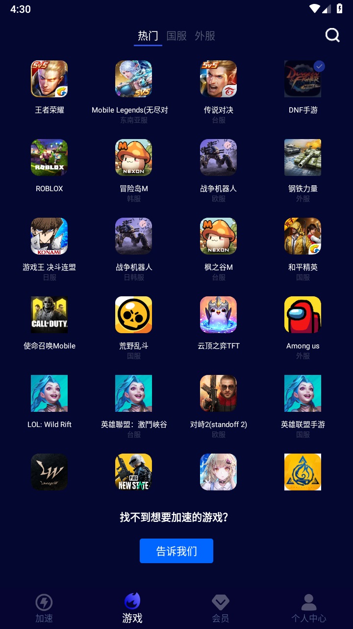 千款全球热门手游完美支持:王者荣耀、和平精英、PUBG、荒野行动、云顶之奕、使命召唤、穿越火线、传说对决、堡垒之夜、影之诗等多款游戏。可随时向我们提交想玩的游戏,你想玩的,我们都支持~