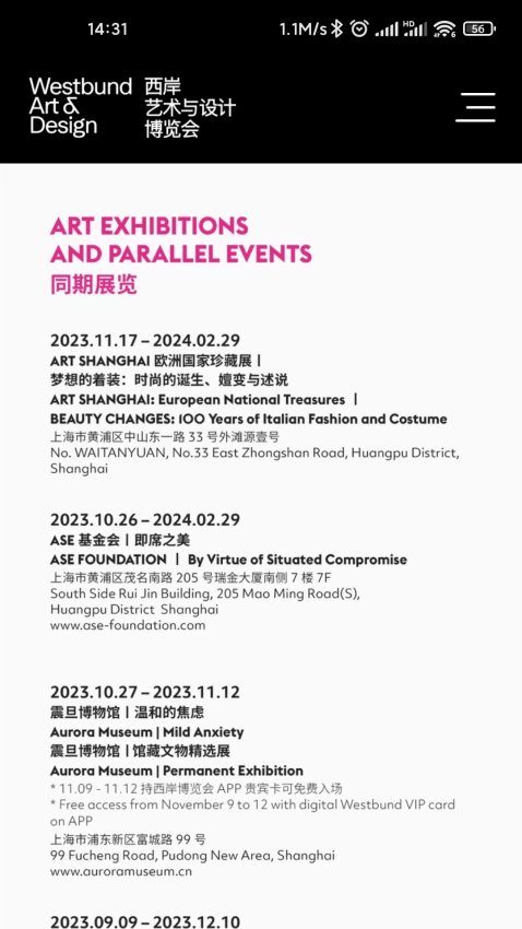 西岸艺博(Westbund)是上海西岸艺术与设计博览会的官方信息发布平台,为艺术爱好者和参展者提供全面的展会信息和活动资讯。