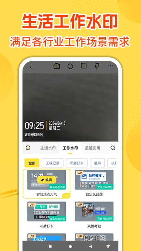 海量水印供用户任意选择并拍摄各样水印照片,助力打卡、取证。