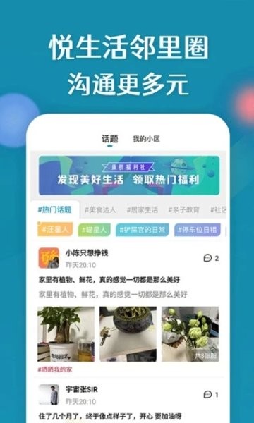 4、进入邻里圈,在线和其他用户进行二手交易,了解更多的社区信息,参与各种社区活动
