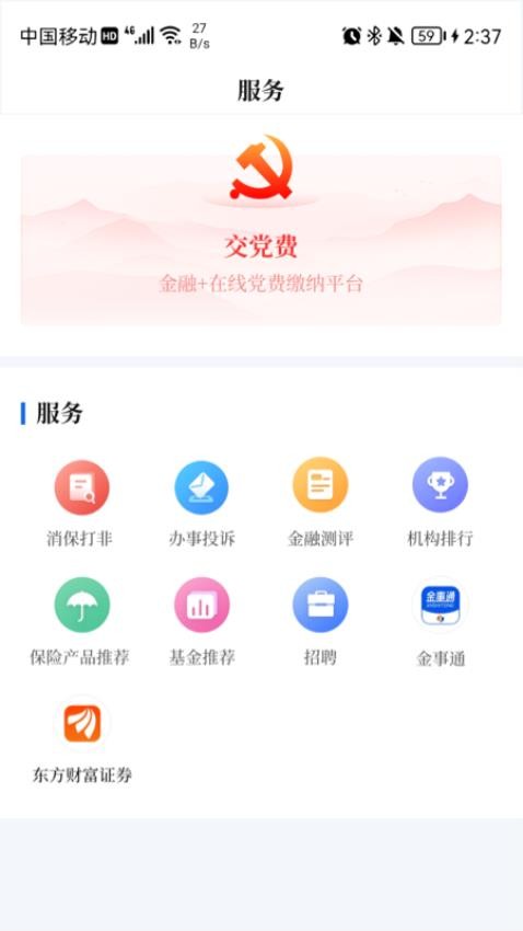 提供的金融领域相关服务非常的多样化,招聘、金融测评、保险产品推荐等多种服务可供用户使用。