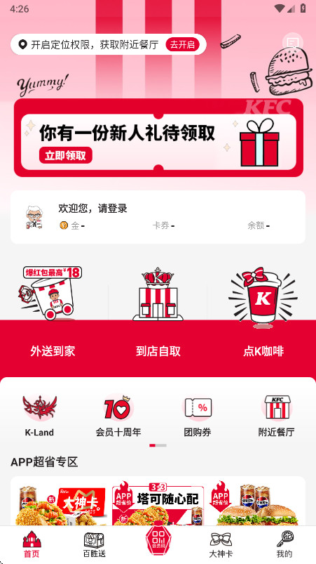 肯德基app是官方推出的一站式餐饮服务APP,整合点餐、优惠、会员权益等核心功能,覆盖全场景用餐需求。支持宅急送、到店自取、车速取等多元点餐方式,早餐可24小时预约,下单免排队。有WOW会员体系,含大神卡、疯狂星期四等优惠,消费积V金可兑餐品与周边。内置K-Music点歌、亲子乐园等趣味功能,还适配极简模式,兼顾不同用户使用习惯。