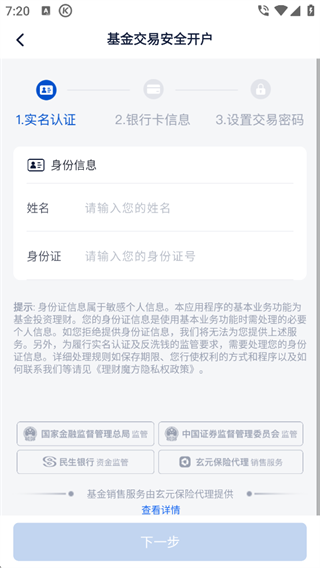 3.进行实名认证,填写银行卡信息,设置交易密码,点击提交。