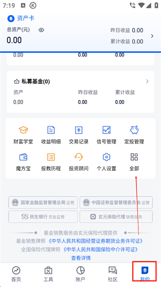1.打开理财魔方app,点击底部的我的进入个人界面。