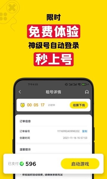 3.低价乐趣:一键出租,秒变大,自由开启账号