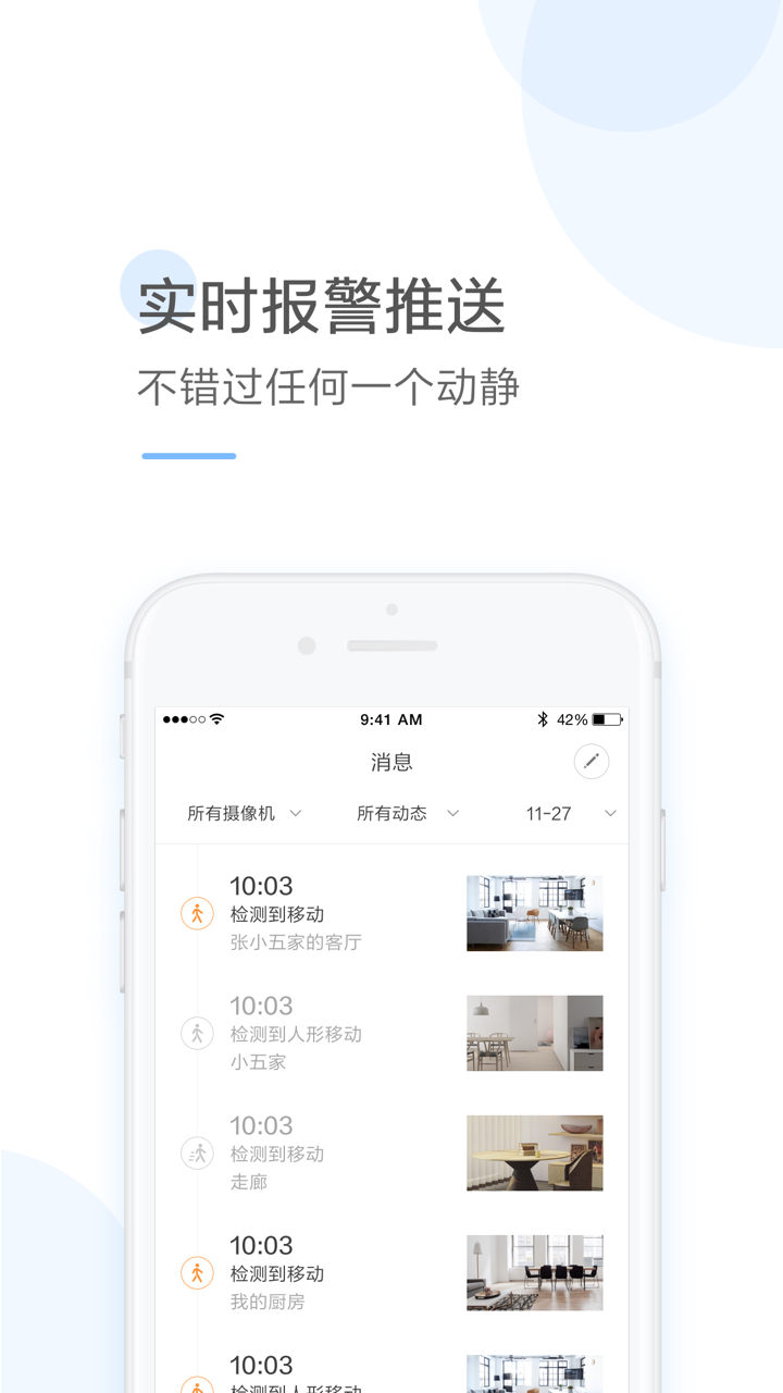 【移动监测报警】任何异动及时通知,6秒短视频免费云端存储7天,事后也能查看异常情况,高度警惕守护您的安全;