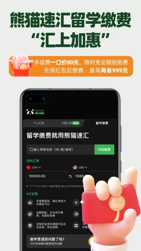 1.留学缴费就选熊猫速汇,更安全、更省钱、更快速