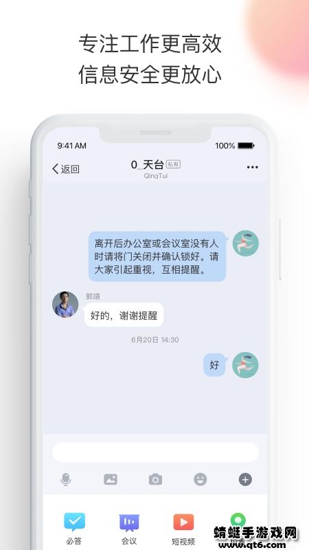 3.多人沟通可创建私有群,未加入成员无法知道群的存在也不能主动加入,与团队外的人员沟通可创建外部群。