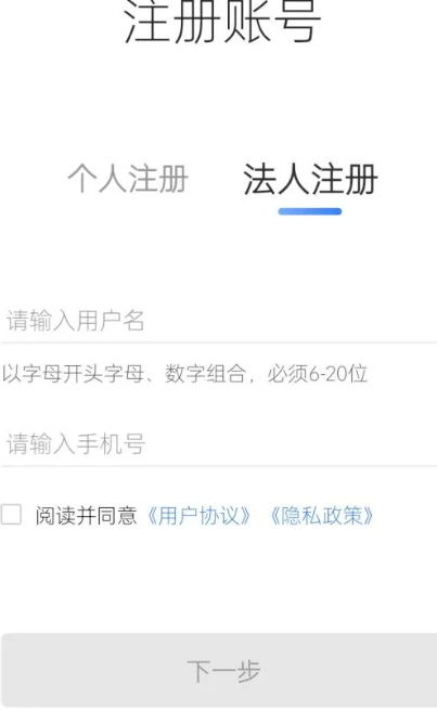 1、进入软件,选择个人或者法人注册