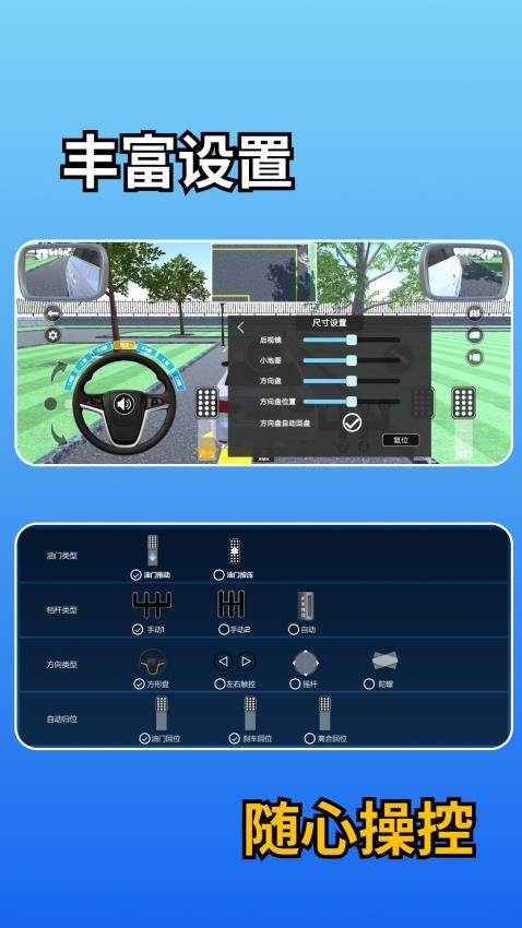 用户可对汽车中的各个功能步骤随心操控,让用户得到更好的实战练习服务。
