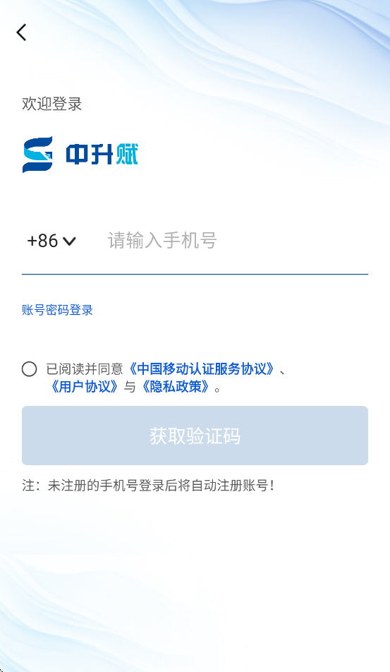 输入账号,密码,勾选已阅读并同意 《中国移动认证服务协议》《用户协议》 与 《隐私政策》,点击立即登录即可