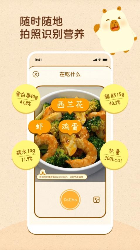 1、打开应用就可以在线拍照记录自己的饮食营养。