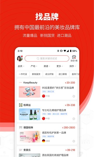 品观网手机版拥有全中国最前沿的美妆品牌库,您可以在这里寻找代工、一键找货、找包材,各类新品上线,快速推新,还有各类新锐国货、进口潮品等你来选购!