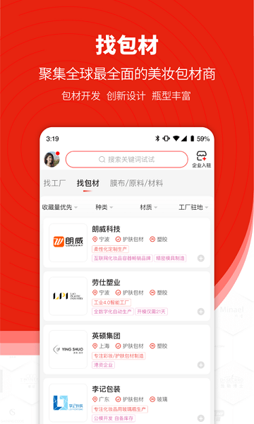 领先的线上化妆品供需对接平台,化妆品行业的包打听,找品牌,找工厂,找加盟,深入化妆品产业链的各个环节,为您提供及时、高效、精准的匹配服务,更有专业的参谋团队,保姆式一键帮您对接,不再错过好商机。