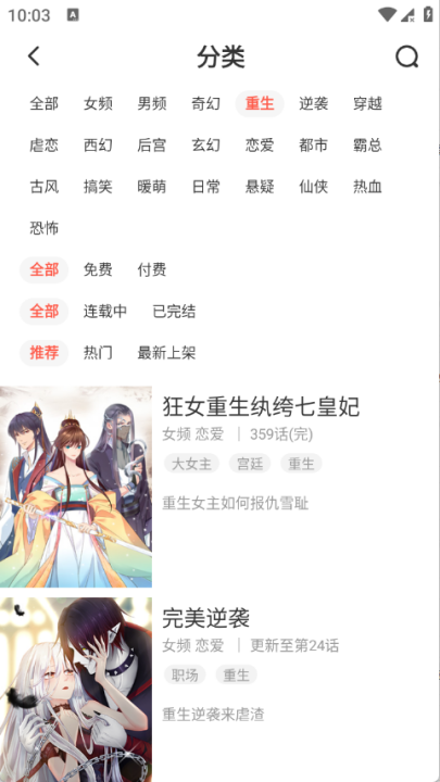 3、分类将漫画进行了详细的归类。