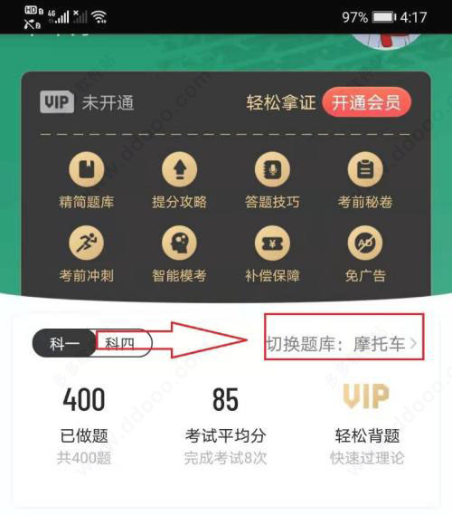 1、打开软件,点击“切换题库”