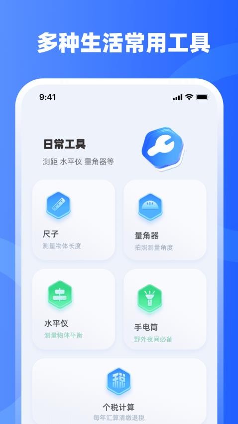 为用户提供了日常生活中的常用工具,可以使用水平仪、手电筒、个税计算等工具。